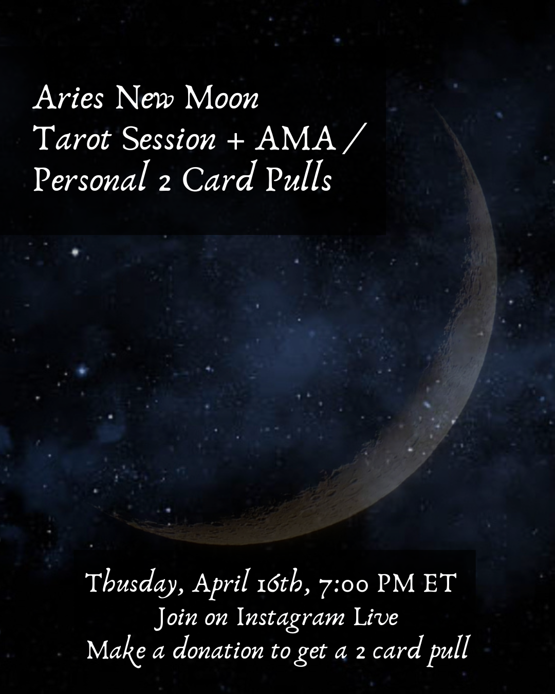 Honour the dark / new moon in community + receive some personal tarot guidance in this Instagram Live on Thursday, April 16th at 7:00 PM ET.